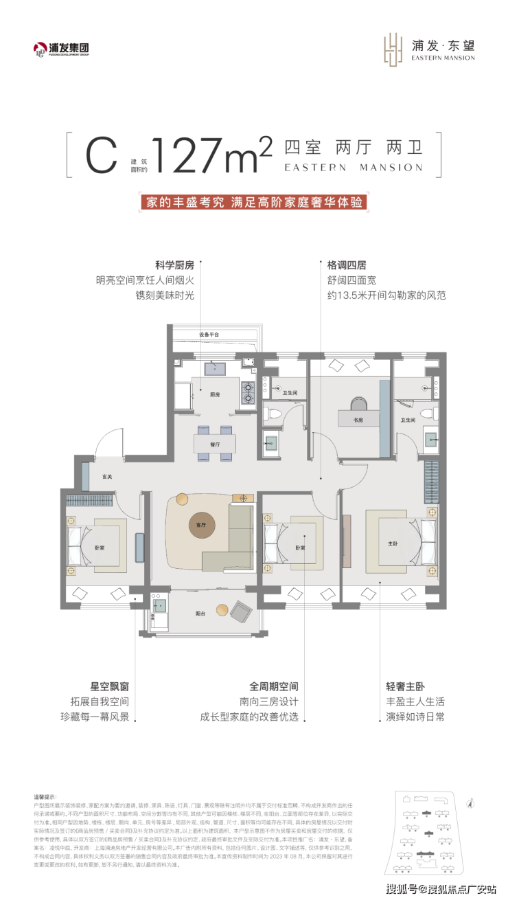 四开间朝南的建面约127㎡4房,位于小区的中间楼栋,数量不多。更加适合改善型的家庭。