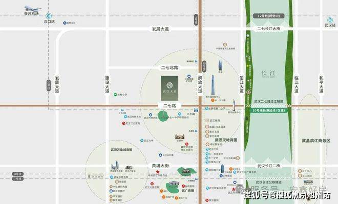 交通自驾:项目周边有沿江大道、解放大道、建设大道,贯穿汉口南北;武汉长江二桥、二七长江大桥,无缝衔接武汉内环、二环;武汉长江公铁隧道、武汉二七路过江隧道(预计2025年投入使用),快速直达武昌。
