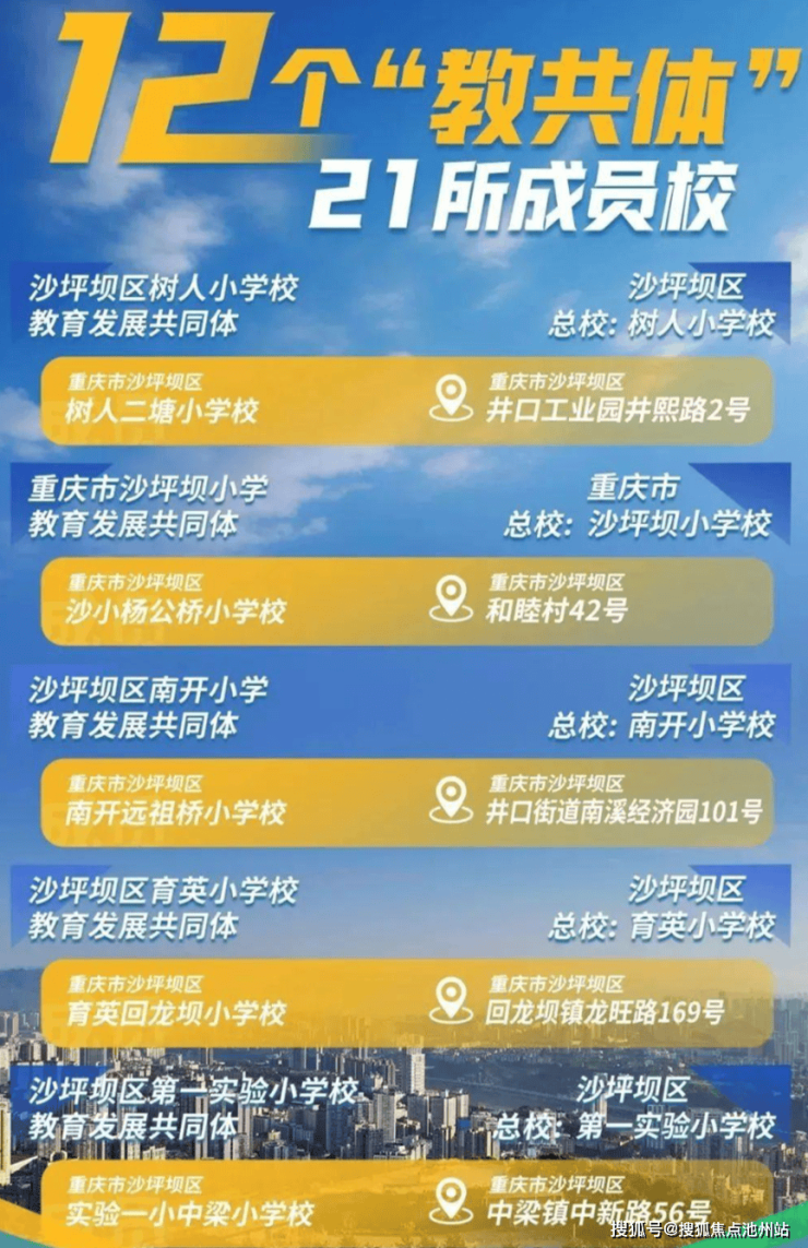 而根据沙区官网的消息,今年沙坪坝更是提出了“优势教育资源的全覆盖战略”,将整合区内名校打造12个教育共同体,首批便升级了21所学校。