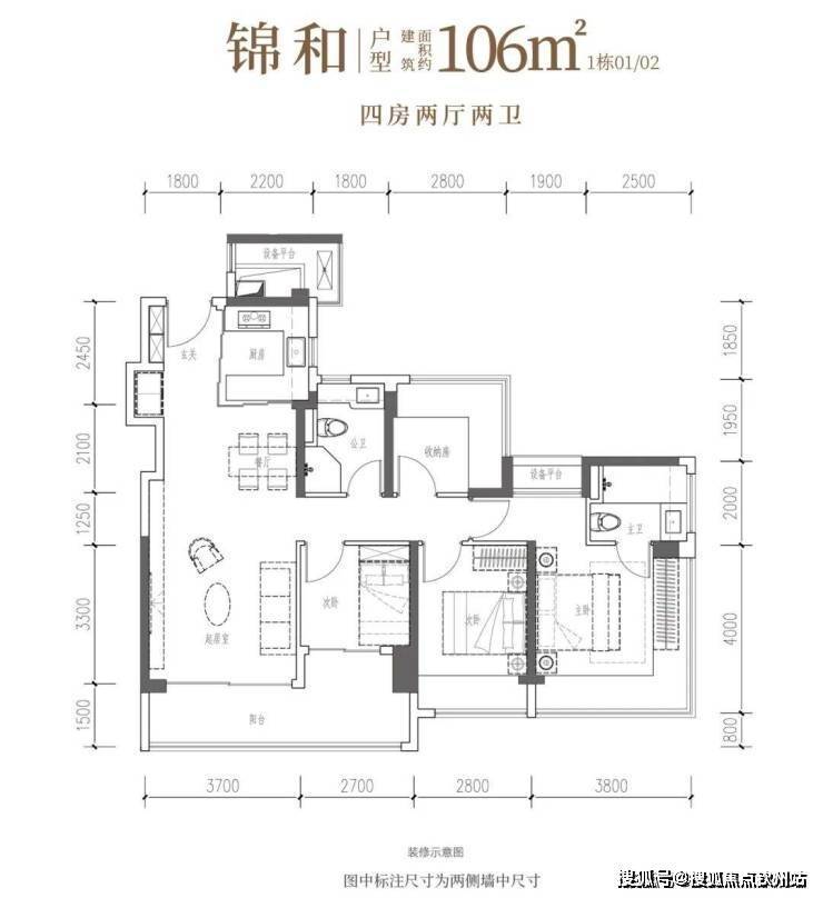 【建筑面积106㎡4房2卫】