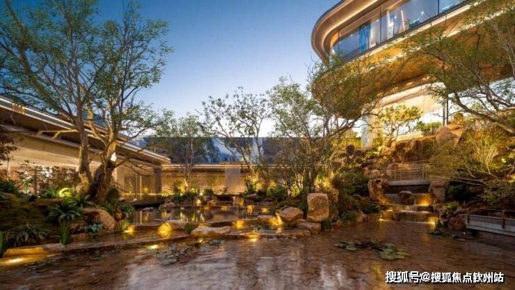 匠心构筑约15米立体高差的四层立体森谷中庭,层次分明的台地与植被营造出丰富的垂直景观体系。山石与林泉浑然一体,勾勒出一幅立体的水榭亭台楼阁胜景。
