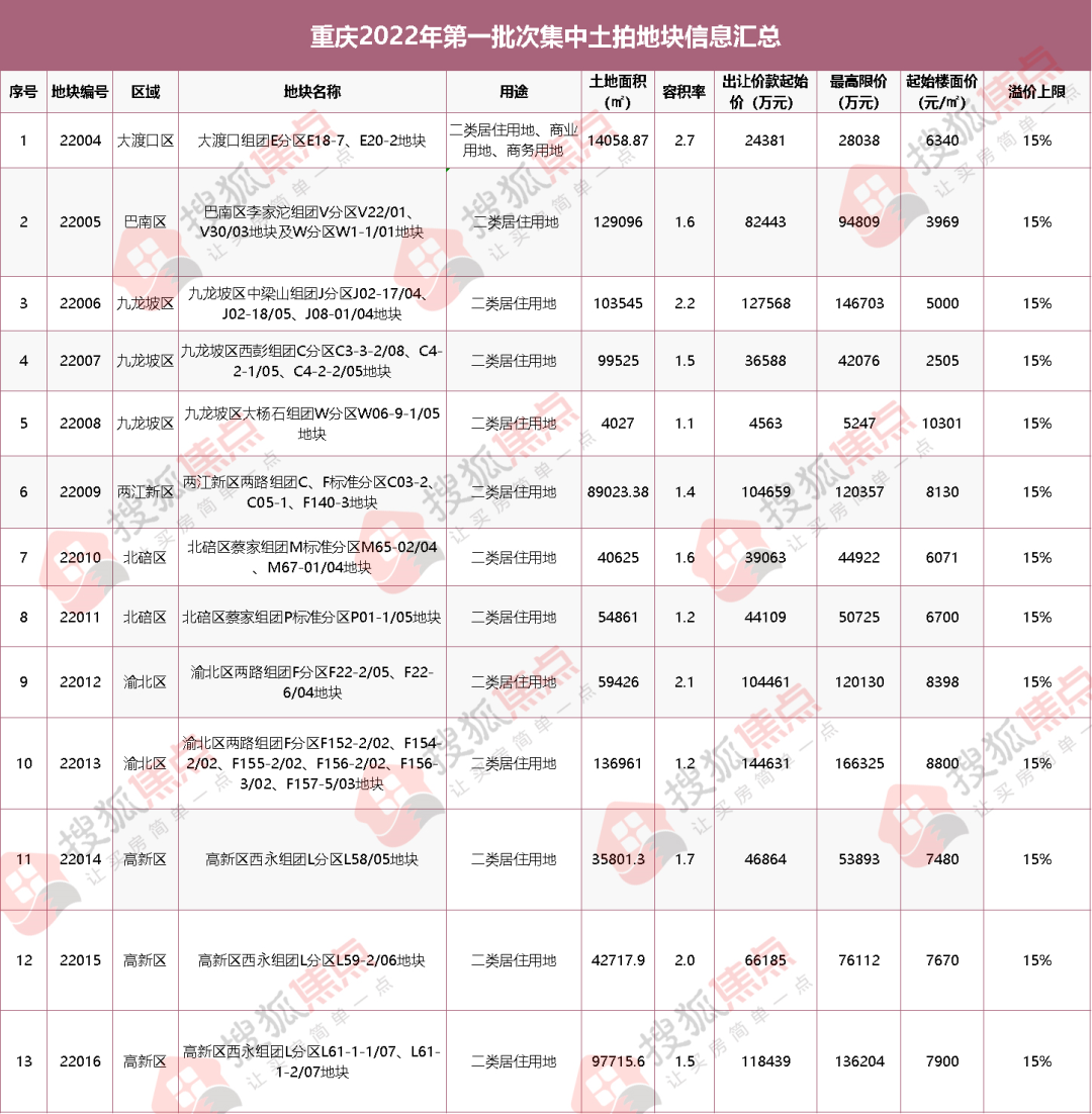 重庆市公共资源交易网公布2022年中心城区排名前列批次集中供地公告。