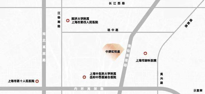 医疗资源方面,项目周边有上海中医药大学附属岳阳医院(三甲)、上海市肺科医院(三甲)等、同济大学附属上海市第四人民医院(二甲)等医疗资源。