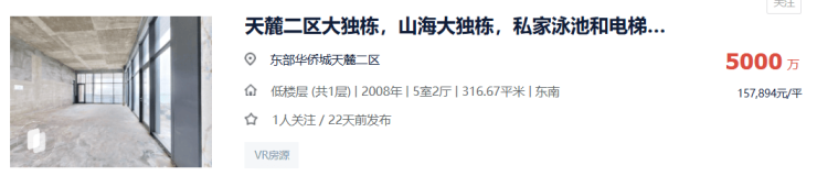 前段时间,东部华侨城天麓二区,一套266平独栋别墅,起拍价1500万,居然被4名大佬疯狂争抢。