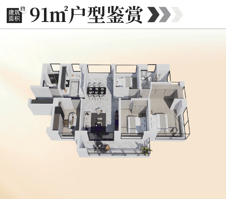91平四房,尺度堪比120平以上的大户型;