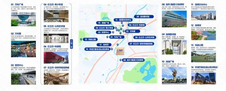 1公里内聚合行政集群(20+政务机构)、商务高地(万科/珠江等超百万方写字楼)、文化地标(25万㎡三馆一城)及七大商圈(万科广场、宝能all city等)