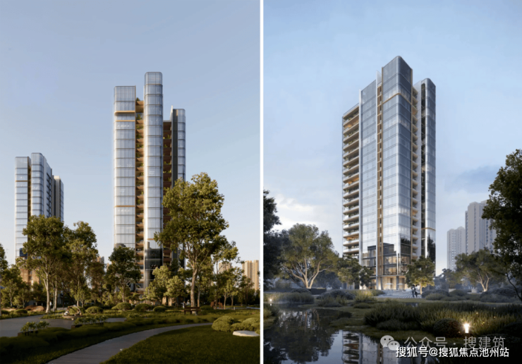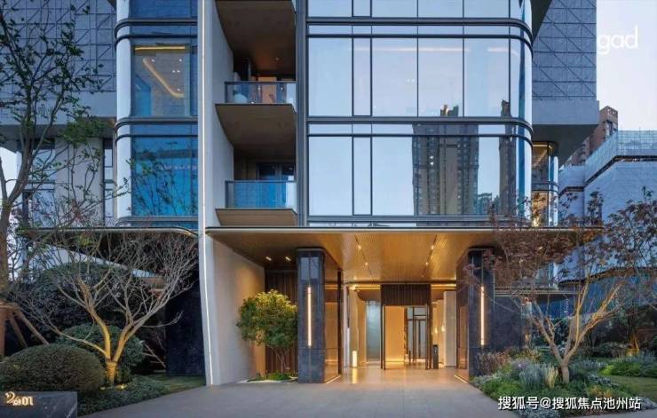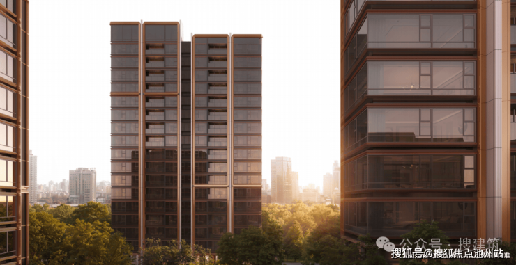 比如,宁波首个金釉陶板立面——宁波保利·明湖金茂府,搜建筑认为这个项目的外立面可谓是花尽了心思,“金釉陶板”与“冰川瀑布玻璃”1:0.5的融合运用,完美演绎着国际范十足的东方作品。