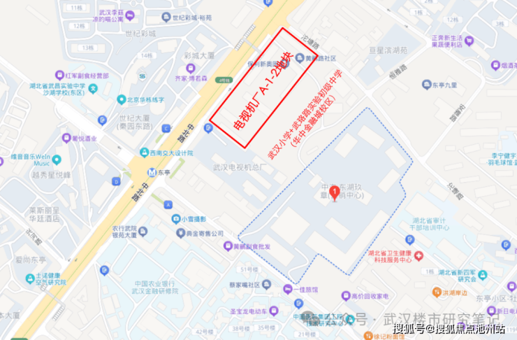地块位于武昌核心,中北路东亭站地铁口。和在售的中海东湖玖章都属于原电视机厂地块。