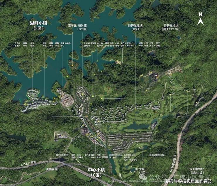 2.湖山自然:高尔夫球会、游艇码头、水上体验中心、湖山栈道、观景平台、落日沙洲、大峡谷