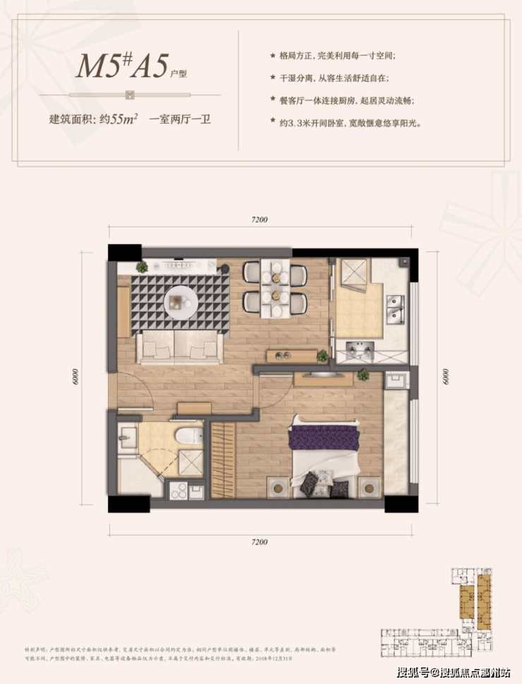 A户型 55方 两房两厅一卫