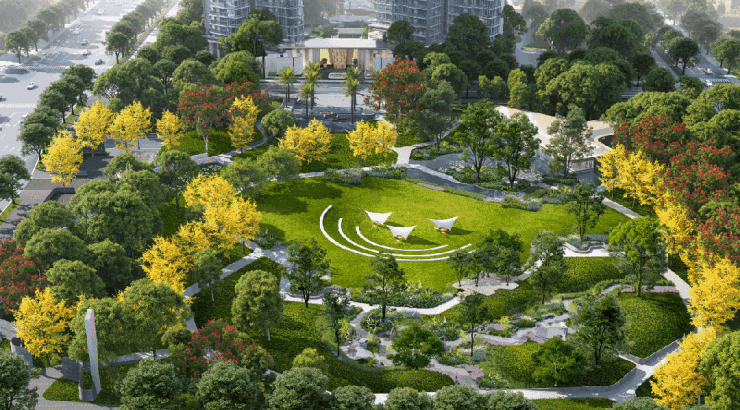园林景观,单看效果图就能感受到辨识度,层次和细节丰富,色彩搭配非常出挑;