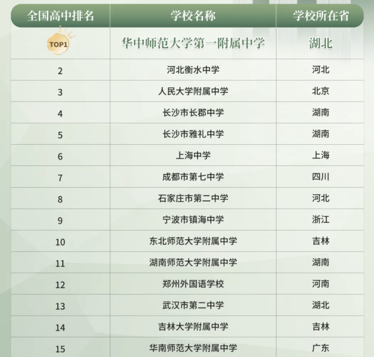 “广东第一看华师附中,全国第一看华中师大一附中。”华中师大一附中以遥遥领先的教学实力、优秀的升学率,连续6年稳居全国百强中学TOP1,被誉为“清北摇篮”。华师附中,仅排名第15位。