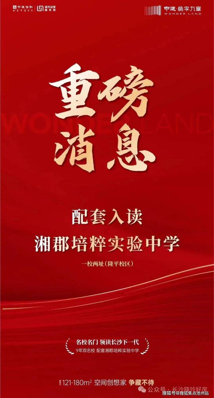 中建桃李九章项目配套入读湘郡培粹实验中学一校两址隆平小区(规划中),是芙蓉区唯一9年双名校配套入读项目