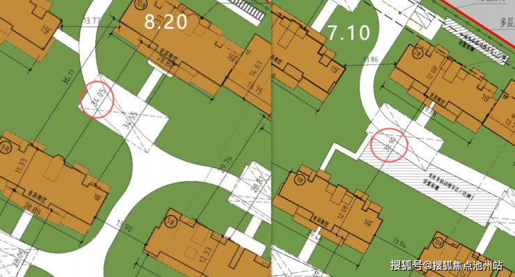 5、楼间距微调:根据观察,8月公示图楼间距有打不通程度微调,一般在20cm之内,调整不大。
