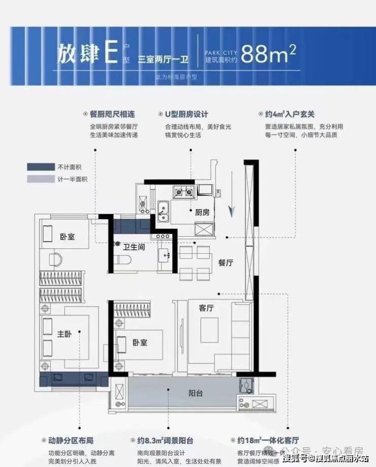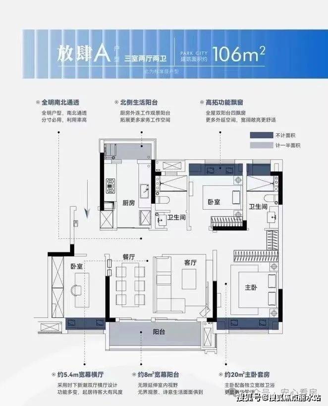 96-106-113三种户型位于小高层总高18层,一梯两户,板楼,南北通透,公摊低,超高得房率。