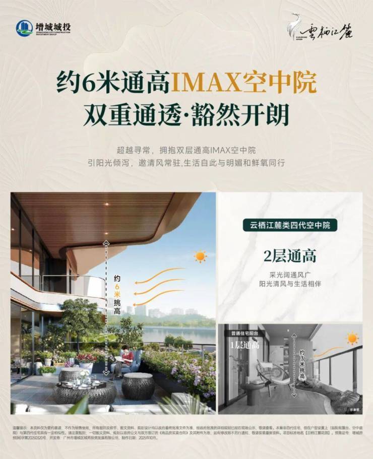 城城投·云栖江麓【云璟】以「约6米通高IMAX空中院」,三大革新设计重新定义“家”的尺度与形态。这不仅是一处居所,更是一处融合自然、私密与功能的立体生活场域,专为追求品质与自由的湾区菁英而来。