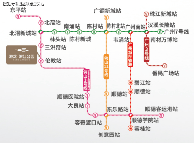 关键点:地铁1站北滘,3站大良,9站广州南,半小时畅行广佛