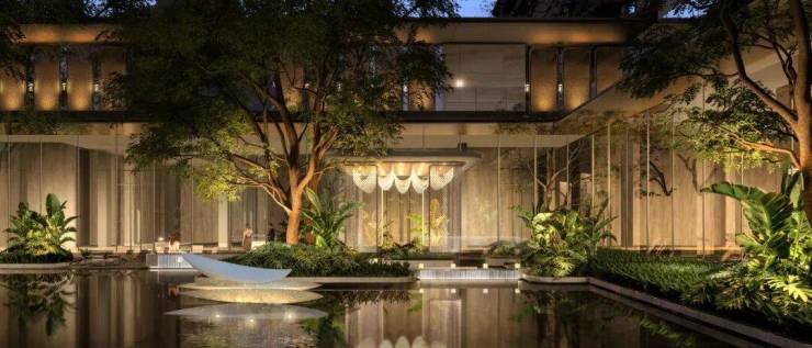 国际化大师景观团队倾力构筑,以“玉”为引,融入“繁花”,更有百年古树点缀,结合海南在地文化,以「六幕十二境」营造奢雅尊崇的礼序归家体验。