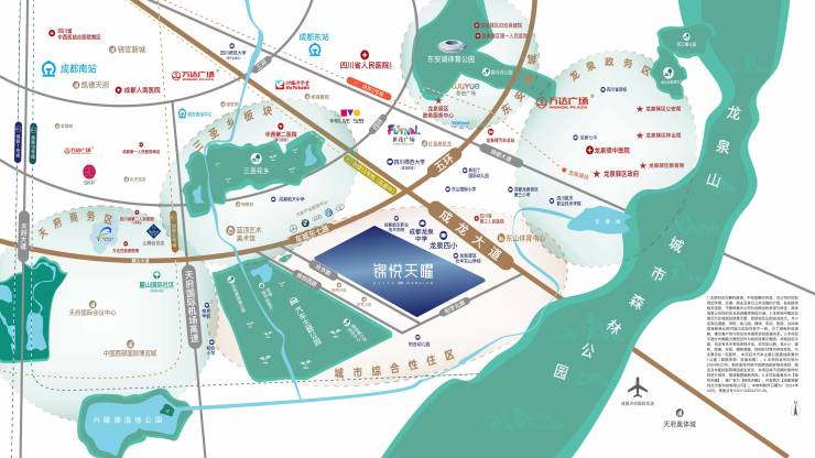 1山2河2公园:龙泉山、东风渠、芦溪河、龙泉山城市森林公园、汽车主题公园;