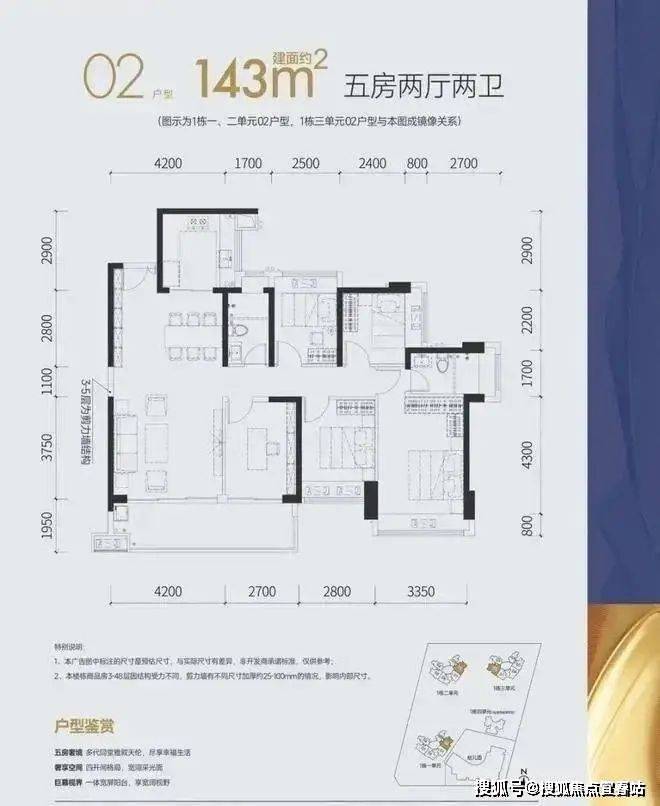 建面约143㎡五房两厅两卫:客餐通厅 尽显大宅显赫气派,五房格局 完满三世同堂幸福生活