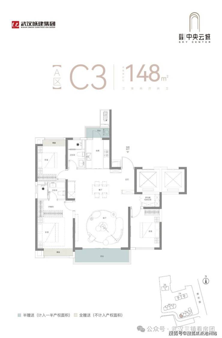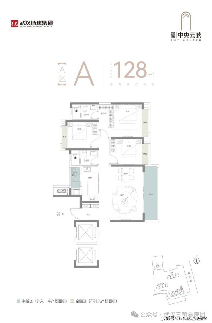 A区3号楼新品低公摊臻品四房:建面约181平米