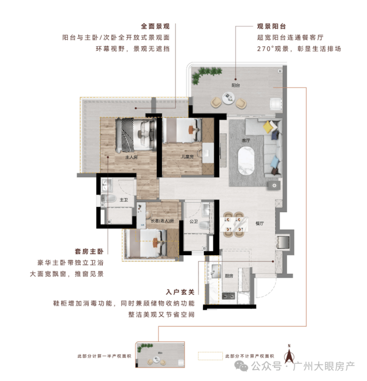 三开间朝南|12㎡宽阔阳台|超广角江景视野|270°主卧飘窗