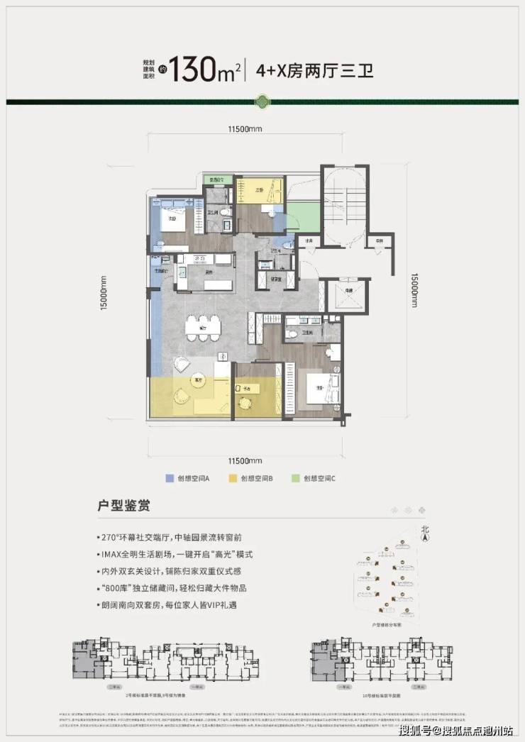 约130㎡户型,客厅更是做到了以往豪宅才能享有的270°采光面