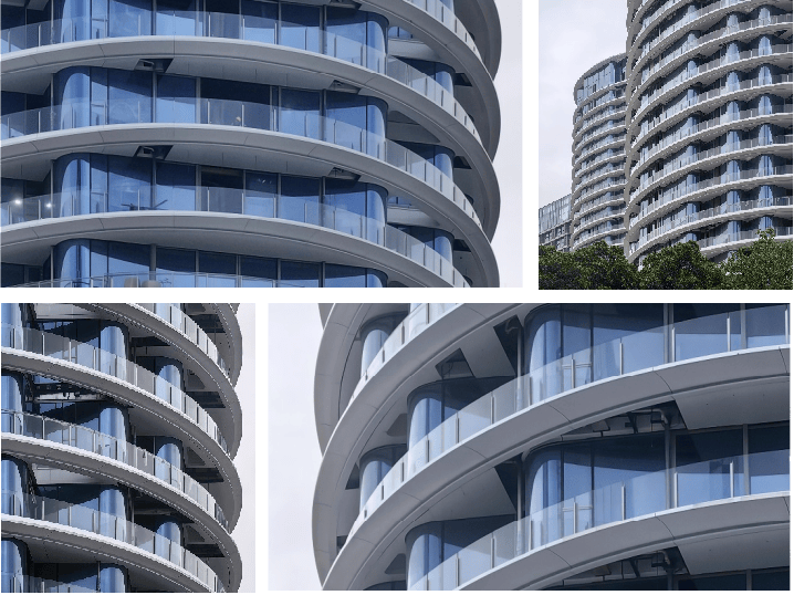 外立面虽然是全圆的,但它户型都很方正,几乎每个房间都带阳台。