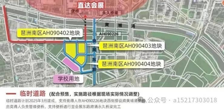 一是临时道路,会搭设黄埔涌便桥,连接琶洲中区,计划 2025年约一季度建成;