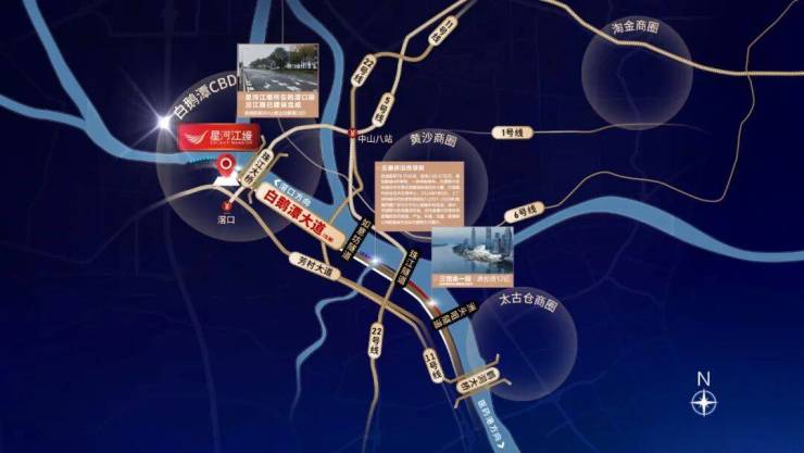 未来通过白鹅潭大道约4公里直达白鹅潭CBD腹地