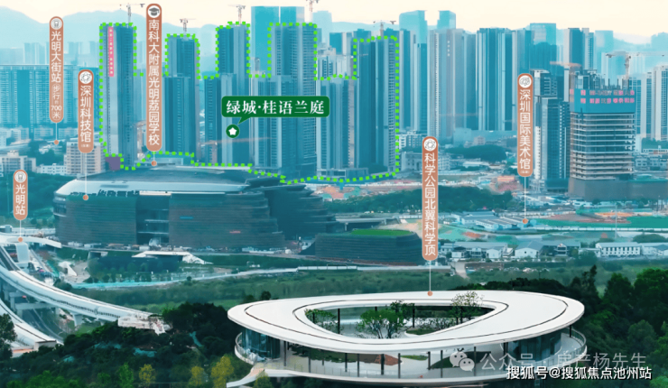 楼盘主要优势: 首先还是区域位置比较好,绿城·桂语兰庭位于光明中心区,在光明大街跟光明站的中间位置,那这个区域来说是定位的光明中心居住区,是整个光明规划最好,居住环境氛围最好的位置了,那主要体现在比如这里有:全深圳最大的城市公园科学公园,还有非常高端的市政配套,像深圳科学技术馆、科学城体育中心(在建中)、会议中心(规划中),还有深圳国际美术馆,那这些配套都是市级的高端配套,足已证明这里的位置在光明的分量了!