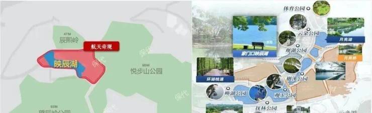 项目南侧有映辰湖(规划扩建至1.7万㎡湖景绿地),步行可至日月双湖。