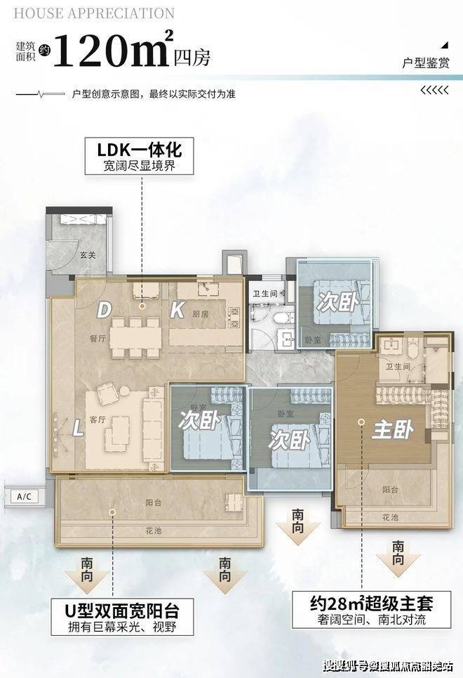 户型创新:90㎡三房客餐厅带飘窗,主套带U型飘窗,空间利用率行业领先;115㎡四房为海珠稀缺小高层产品,四叶草户型设计强化私密性,南北通透对流;