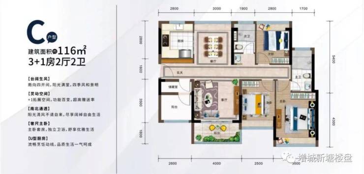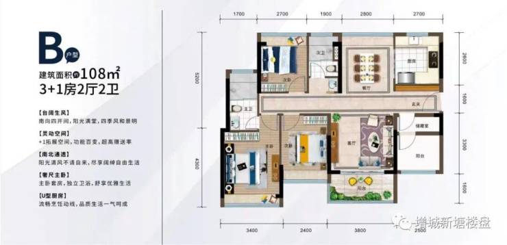 全N+1的高赠送面积设计,方正实用,均朝南,无遮挡,采光通风好。