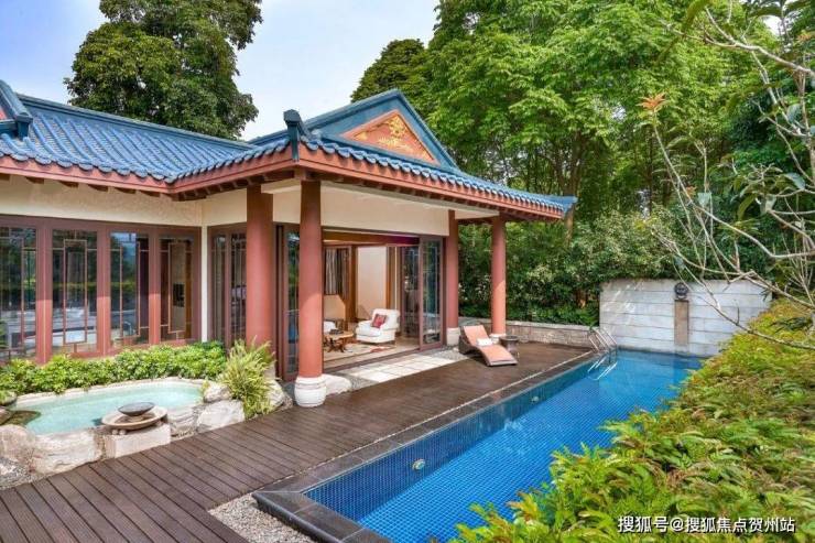 仿佛“南国紫禁城”一般华丽气派,庄园内148间客房包含90间桐泉台套房和数十栋院落式别墅,之前一直都是仅接待贵宾,近两年才逐渐对外开放,但也只允许住客进入,私密性超强。