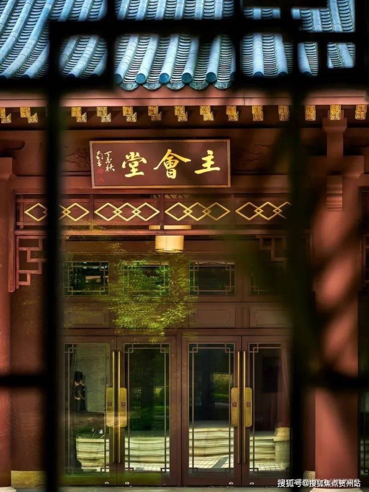 盛唐风格的建筑气势磅礴,雍容大气,香樟琉璃和苍劲青山连成一幅丹青水墨画,方圆交错,设计暗含诸多国学文化,亭台楼阁与山水相依,重檐殿顶建制格外亮眼。
