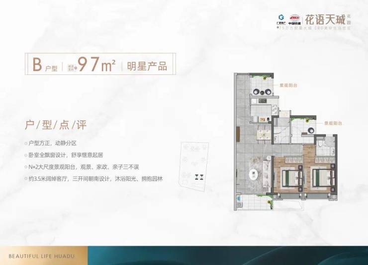 约97-137㎡三至四房,85%得房率