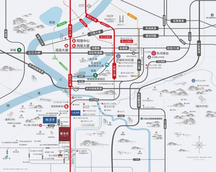 杭州萧山华景川樾臻府位于时代高架旁,时代大道高架串联起滨江的北端与南端,使得区域与滨江紧密相连,轻松实现30分钟大滨江生活圈,让出行变得畅通无阻。