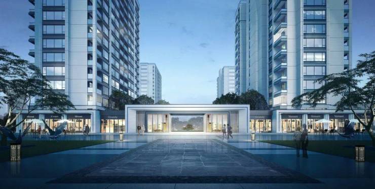 杭州萧山华景川樾臻府采用感光立面、时尚国际化的简约立面风格光幕建筑,拥享广角视野,为居住者呈现出一种时尚、简约、宽敞的居住体验。