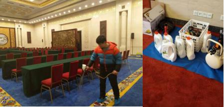 为了不影响两会会议安排,2月28日早6点,馨立方的工程师们就来到了人民大会堂云南厅开始了治理工作:先后采用了馨立方植物熏蒸液对地毯进行了熏蒸处理;采用馨立方森林瀑布负离子进行了雾化喷洒处理;采用了馨立方极光纳米蜡对有异味的烤漆屏风进行了雾化喷洒以及揉擦处理。