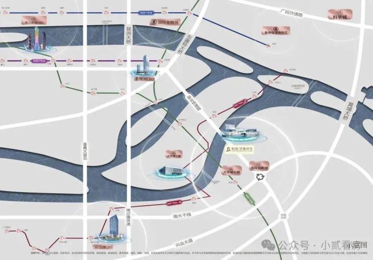 地理位置来说,坐落于琶洲南、珠江畔。可以说是得天独厚,又在国际科技创新城内,这里如同城市发展的 “大脑”,与 CBD 黄金三角距离仅 10 - 15 公里 。作为广州科创核心区位,对标美国硅谷,无疑是未来城市发展的风口所在,具有巨大的发展潜力与价值。