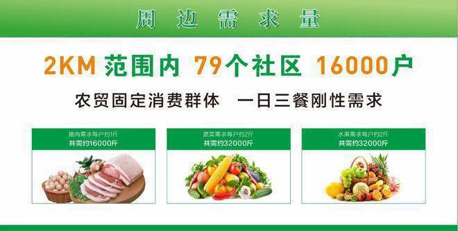 【市集业态分布】 业态分布:海鲜水产、猪肉、熟食、牛羊肉;水果、蔬菜;鸡鸭禽、;豆制品;粮油米面等