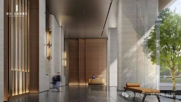 大堂公区,豪宅氛围感立刻拉满。据介绍,单是此大堂公区,便耗资百万打造,使用意大利木纹和斯尼卡灰石材,缔造出一种臻稀奢华的居住风范。好的空间设计从不囿于室内,而与自然、建筑、景观一脉相承。珠光·金融城壹号,以无界设计原则让风景随时进入室内空间,不仅拉伸了生活的尺度,令生活的仪式感与尊贵感油然而生,更生动地诠释天河CBD与珠江江景的磅礴气象。卓越的设计专业知识与丰富的国际化经验倾力把关从艺术、自然、都市、创意、江景等多个维度的思考,以匠心敬献给时代一座伟大建筑,亦向时代展示着珠光·金融城壹号的人居美学。