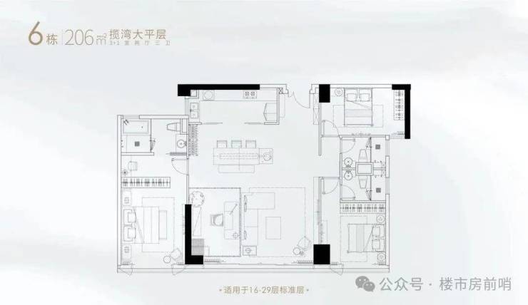 此外,金融城还具有其他稀缺性,例如交通便利、商业发达、居住氛围纯粹等。珠江是广州的经济动脉,也是城市的景观带,高价值的建筑沿江而建,慢慢形成了一江两岸的繁华景象。我们针对地形反复推敲和比较,推翻传统正南朝向布局,将部分楼体旋转,形成270°面南观景角度,让居者在家中就能看到繁华城央建筑,和珠江交相辉映的最佳江景。以‘江岸花园’的设计理念,将珠江水景引入前厅,让水景与绿植模糊室内室外的边界,营造归家的仪式感,延续岭南山水园林意境。提炼岭南独特符号,以独具广府特色的壁灯、屏风,为9m挑高的入户大堂,营造尊贵府邸的归家气质。CCO创始人对的珠光金融城壹号设计理念珠光·金融城壹号对当代峯层生活进行形制创新,通过场地的层次感与连通性,隐蔽空间和开放空间宛如明灭闪烁的星辰,形成动中有静、静中有动的空间体系,让雍容而内敛的无界意境油然而生。珠光·金融城壹号在空间营造方面,珠光·金融城壹号基于全球高奢生活范式研究,通过对家庭关系的重视、对空间尺度的需求、以及江景到生活空间的延伸,对内部空间极致考究,充分挖掘居住价值,创造舒适质感人居体验。其中206-380㎡天幕瞰江大平层,高定超13M长阳台,270°环幕望江,5开间朝南,尊享约27M奢阔巨幅面宽社交化厨房、自由巨厅等,带来不同另类的朗阔舒适的居家空间体验