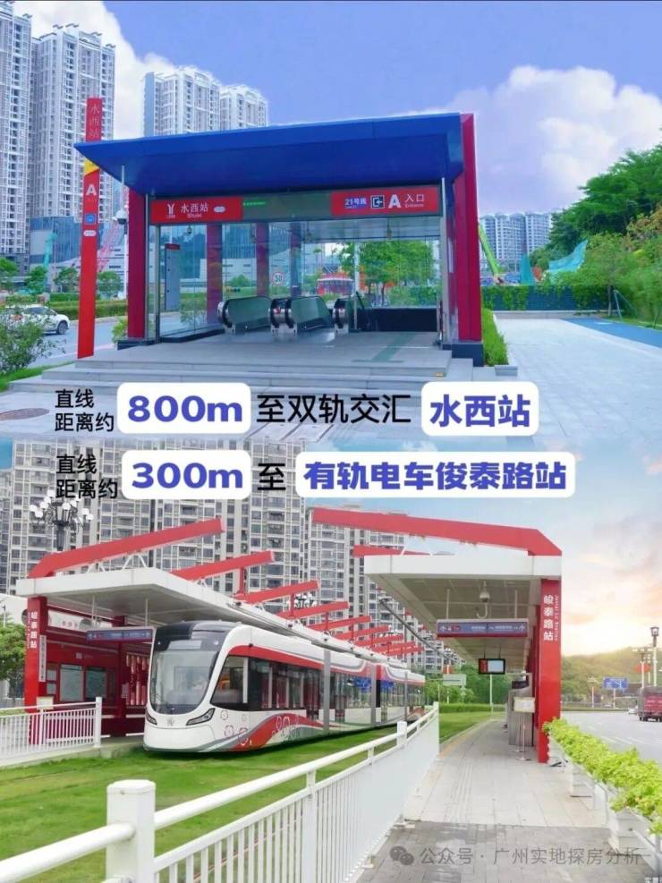 项目距离地铁7号线二期与21号线的交汇站点水西站直线约800米,3站即可直达天河;直线300米即达有轨电车1号线峻泰路站,3站接驳地铁6号线香雪站。