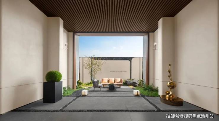 穿过归家大堂,入眼的便是大片的镜面摩登水院,涌泉叠水,高低错落、动静相宜。 景观 设计团队更是在水院里做了一个下沉式卡座,未来业主可以在这里闲坐观景,与三五好友可以畅聊天地。