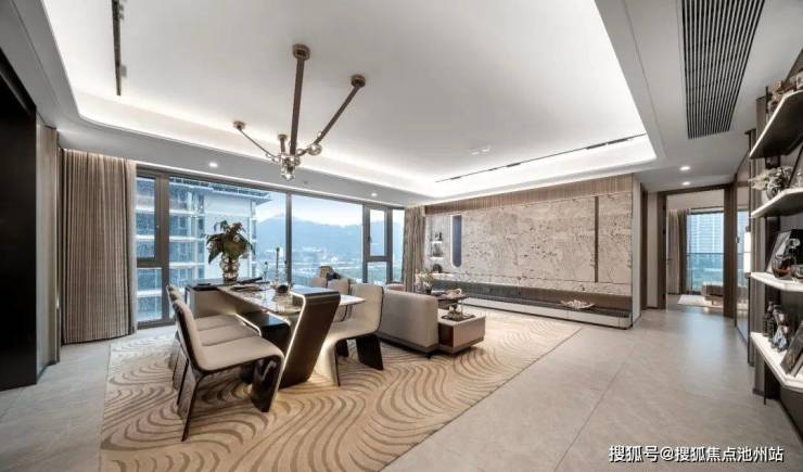 远超3万+楼盘的超配豪宅感。面铝板加大面积玻璃,中间勾勒金属线条,整体还做了更复杂的曲面造型,打造出很有辨识度的「金框超流体」立面。为了更融合的气场,建筑顶部还雕琢了弧形塔冠。看到这样的立面颜值,别说超过3万+,哪怕搬到奥体、钱江新城,也完全立得住。