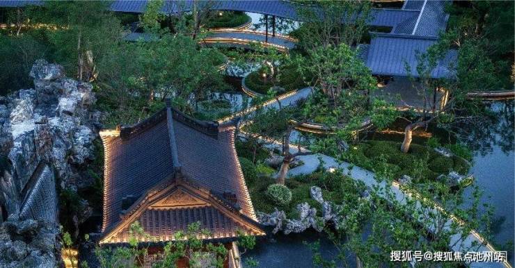 北园拥山:师法寄畅园的叠山胜景,打造锦汇涟漪(园亭静水),禅隐林苑(宅间花园),凤丘鹤舞(儿童活动区),八音水涧(山石叠水),九狮耸秀(山、石、亭、叠水)五重山境。