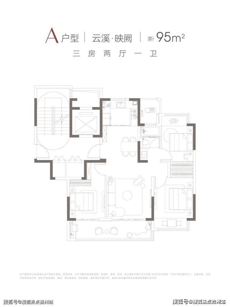 95㎡三房:约6.7米双开间阳台连通客厅与次卧,空间利用率高;LDKB一体化设计,动静分离,实用性强。