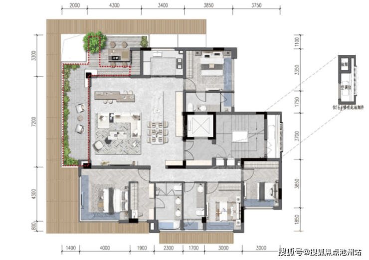 173-182㎡大平层:总价400-500万,部分户型带露台